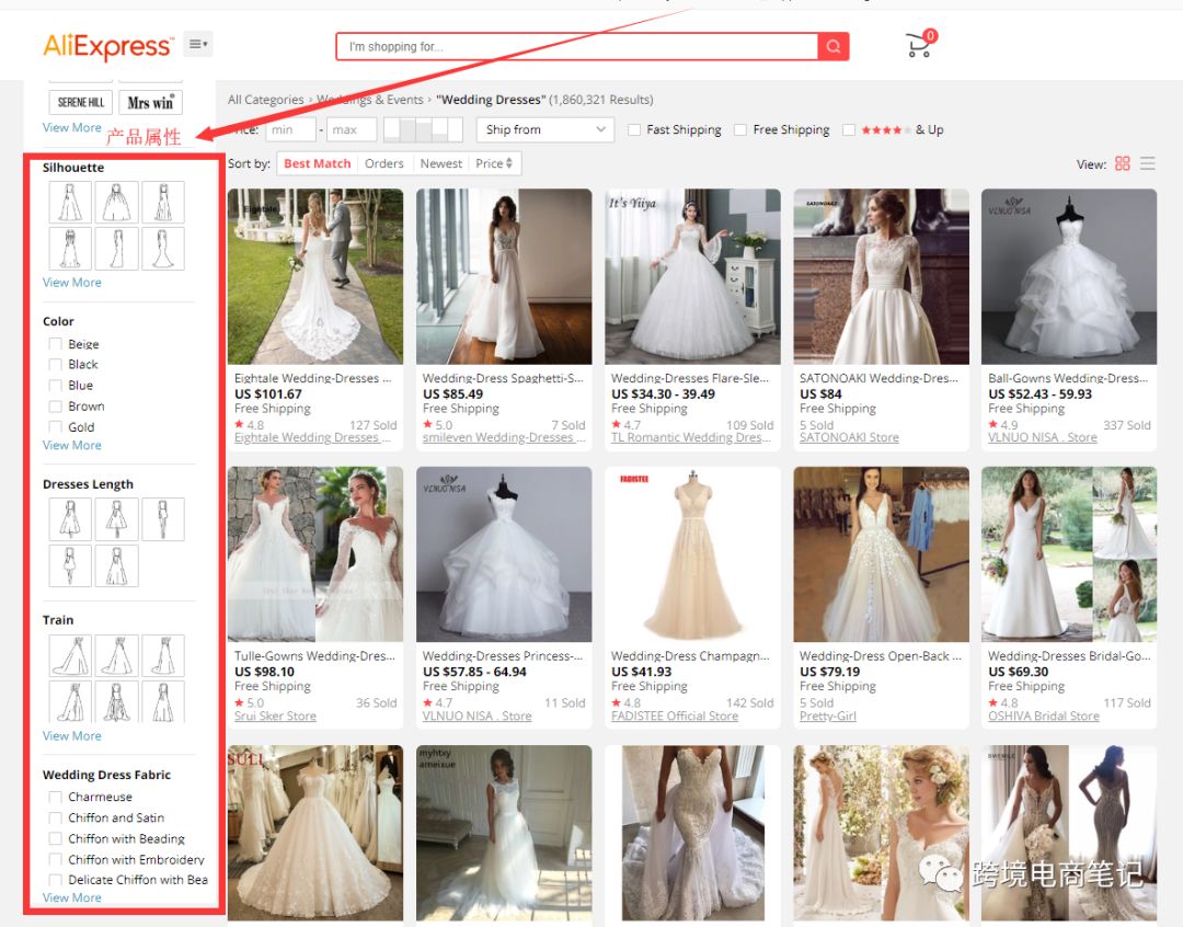 b. 在平台上查找同款产品或同类产品,了解产品属性;