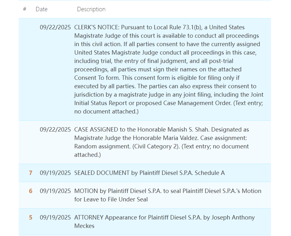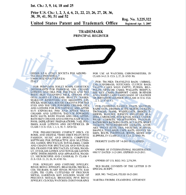 原告是位于意大利,是欧洲顶级设计师牛仔裤和其他服装制造商之一,包括DieselStyleLab品牌、极限运动风格的55-DSL运动服系列和Diesel Kids童装,除此之外,Diesel业务涵盖服装、鞋履、皮具、眼镜、腕表、香水及家居用品等多个领域,在全球拥有200余家专卖店,批发业务覆盖大型服装销售点和百货商店。