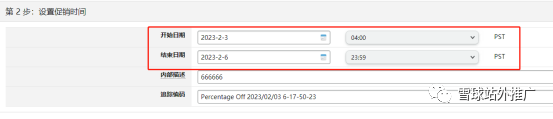 是设置折扣码的生效时间,这里指太平洋美西时间,这里最早的生效时间是4小时之后,日期可以根据个人需要选择。