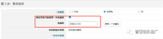第六步 折扣码选择【无限制】【优先型】