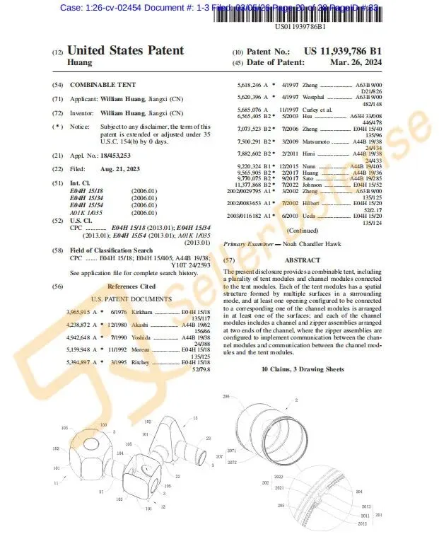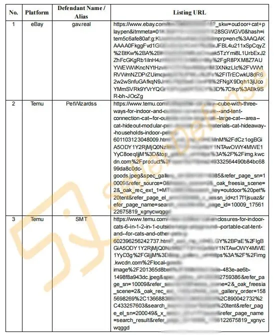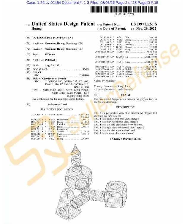 本案为国人原告,曾于2025年发案便携式露营帐篷炉。本次涉案专利产品是三款便携式宠物攀爬帐篷,请相关卖家注意排查下架!