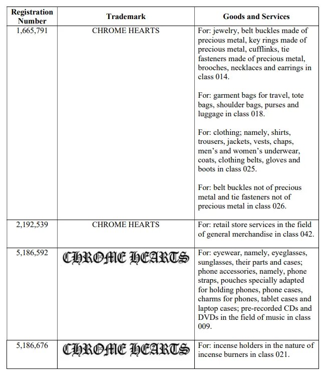 品牌原告:Chrome Hearts LLC