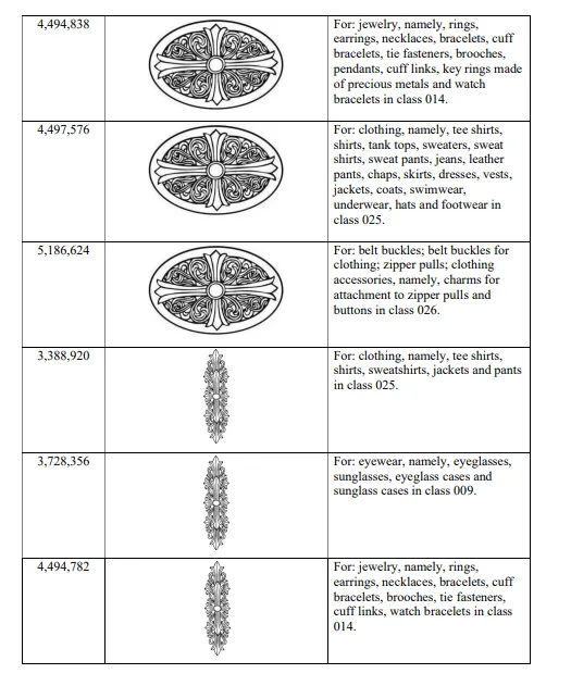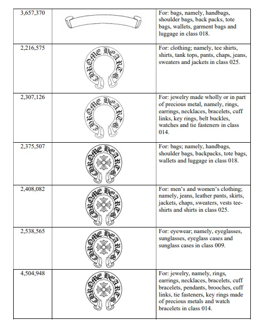 从赛贝TRO案件查询系统获悉,原告Chrome Hearts LLC(克罗心)于2026年4月15日委托知名知识产权律所GBC,起诉多名跨境电商店铺通过线上平台销售侵权产品。原告核心涉案商标为“CHROME HEARTS”系列注册商标,品牌风格以哥特式设计为核心,融合银饰肌理、复古图腾、暗黑奢华质感,辨识度极高;涉案产品覆盖银饰、服饰、皮具、配饰等奢侈品全品类