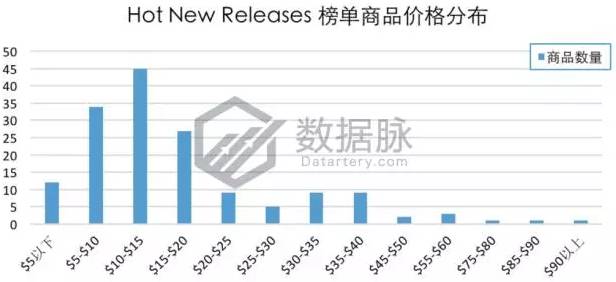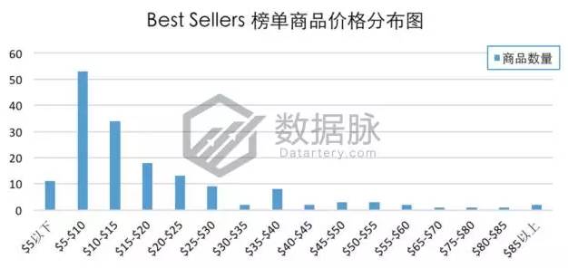 上周Clothing, Shoes & Jewelry品类Best Sellers榜单商品最高价$89.95,最低价$0.99,平均价格$18.51。骆探长发现,上周上榜商品均价持续回升,同时价格分布在$5.00-$10.00区间内的上榜商品数量也继续上升,占比达32.12%,另有20.61%的商品定价在$10.00-$15.00区间。此外,仅有2款商品价格在$85.00以上,占比1.21%。