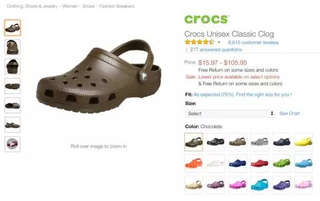 可以看到,在上周Clothing, Shoes & Jewelry品类的Best Seller榜单中,Crocs洞洞鞋依旧保持稳定发挥,一周内5次登顶Best Sellers榜首,以平均排名1.29的成绩继续在这个炎热的夏季领跑榜单;