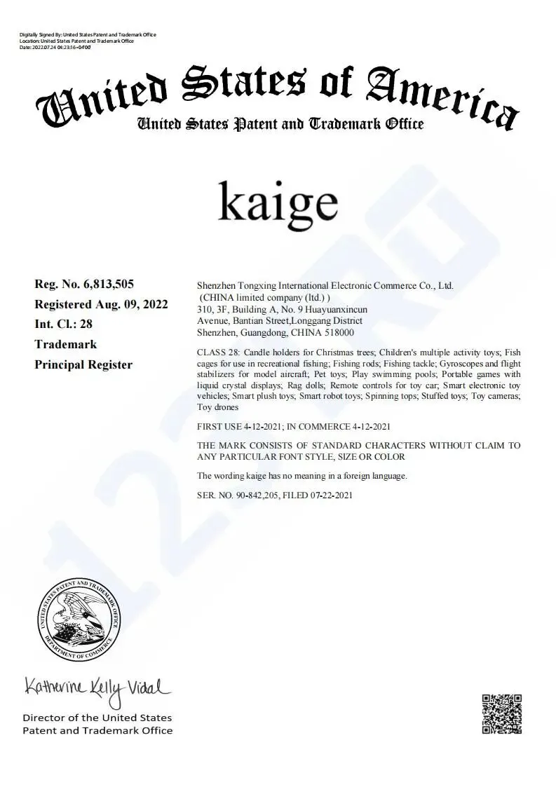 涉案商标在202 年8月9日下证,注册类别28类,其商品范围包括圣诞树烛台、儿童玩具、钓鱼用具、宠物玩具、智能玩具等