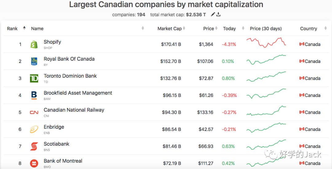 Shopify作为目前发展最快、前景最好的Saas建站平台,股价一路飙升,超过加拿大皇家银行,目前股价1740亿美金,一度成为加拿大股票估值最高的公司,还是很牛逼的。