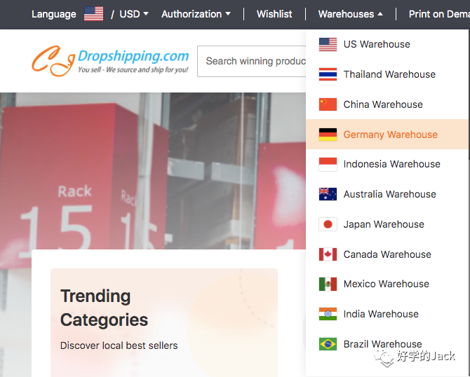 同时CJ平台也支持跨境卖家以零仓储费的前提购买私有库存或者直接把自己的货物发到CJ的仓库。
