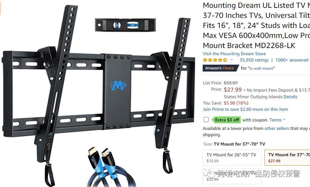我在亚马逊美国站看到一款电视支架,有Amazon's Choice标志,留评35950: