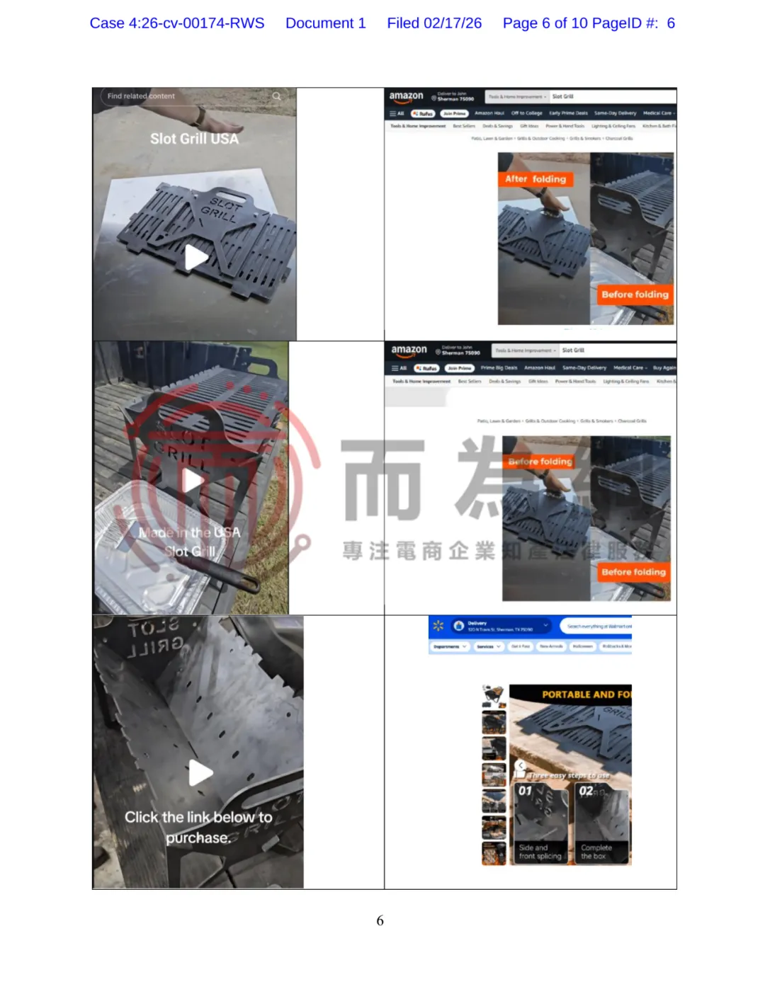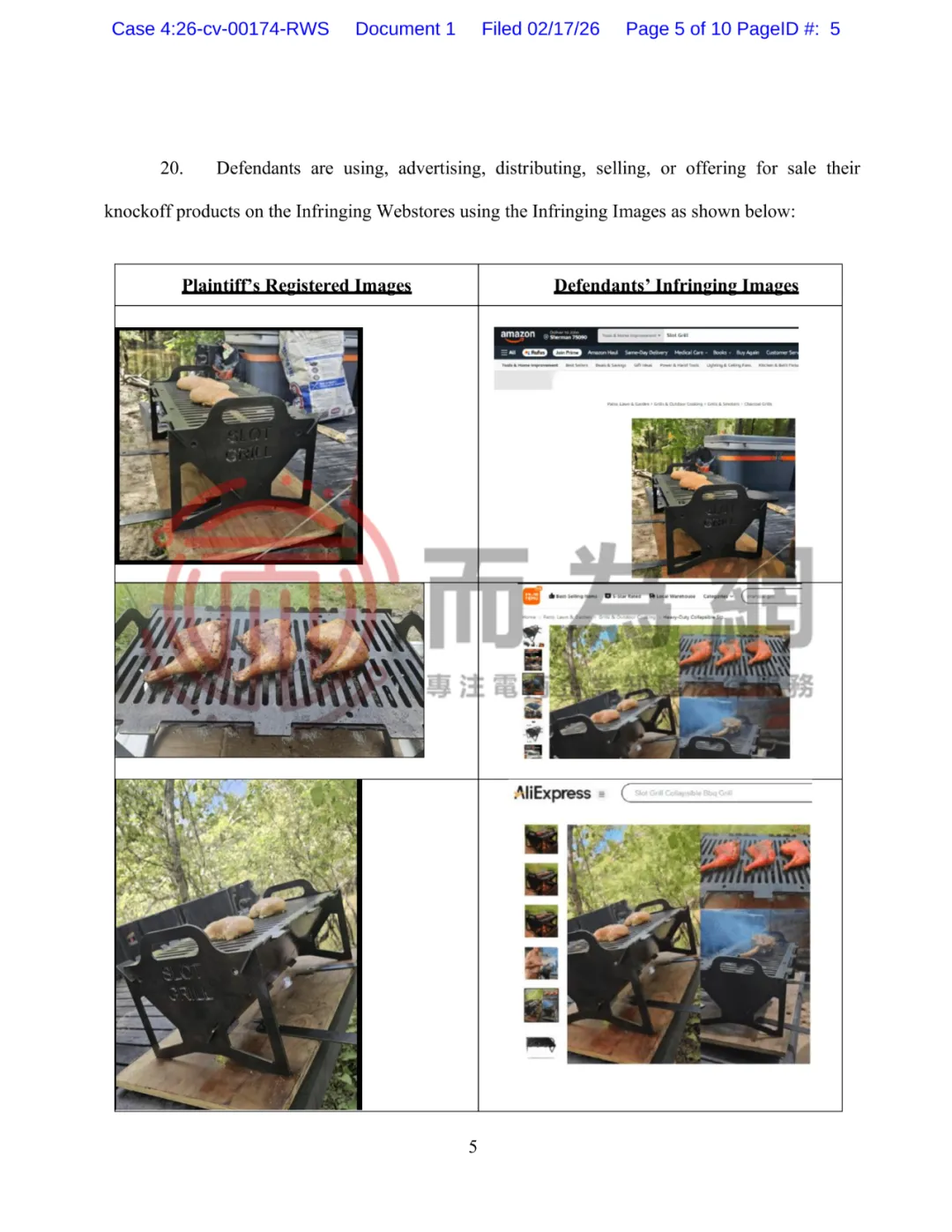 【侵权快讯】26-cv-00174 速看!可调节折叠式烧烤架发案维权,包括图片+视频版权!