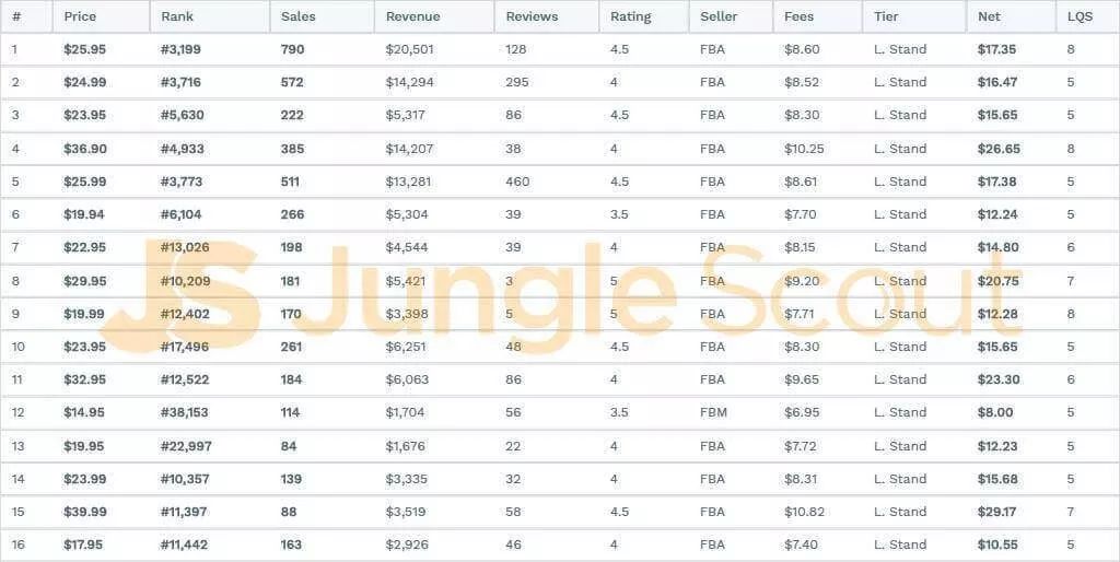 以Jungle Scout的扩展程序生成的某产品数据为例,我们可以看到4组BSR在前5000的卖家。