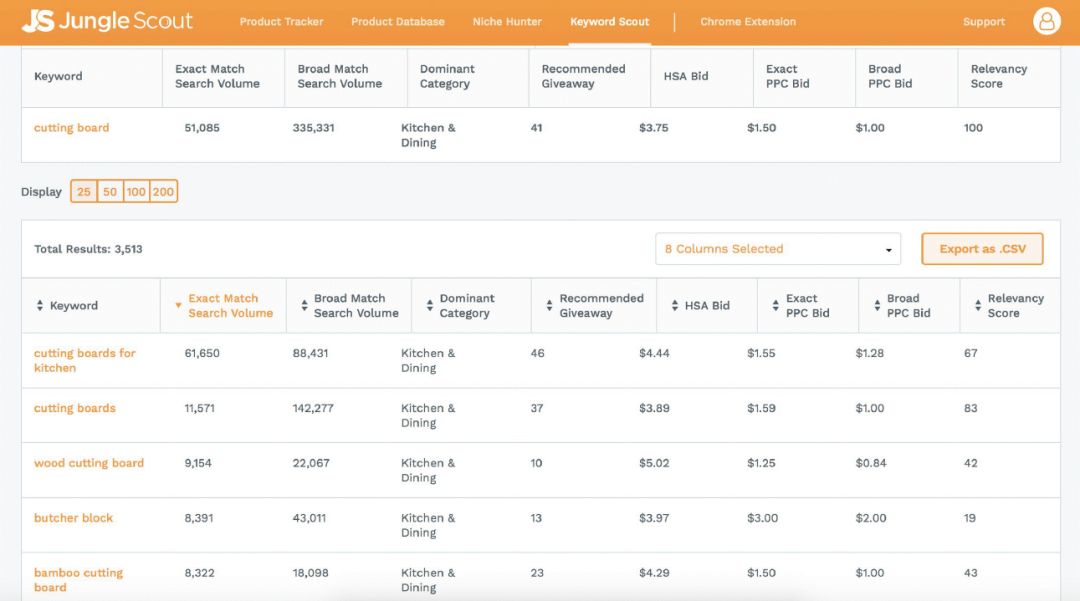 关键词搜索量工具Keyword Scout提供的数据为例,卖家可以按照以下标准进行筛选查找: