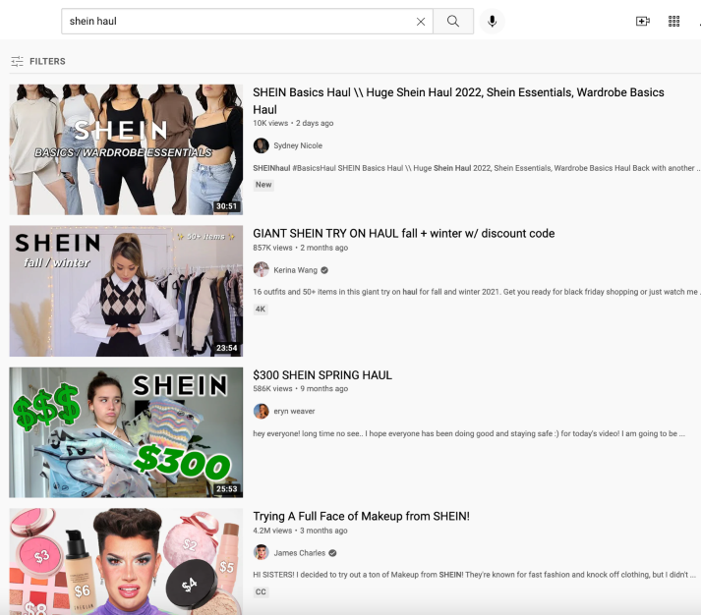 UGC内容带来的真实流量源源不断涌入,不能能为品牌流量注入活力,还能潜移默化的塑造品牌形象,推动很多博主自发为为SHEIN种草宣传。在Tik Tok和Youtube上,最热门的十个与SHEIN穿搭相关的帖子,只有两个博主受到过SHEIN的赞助。