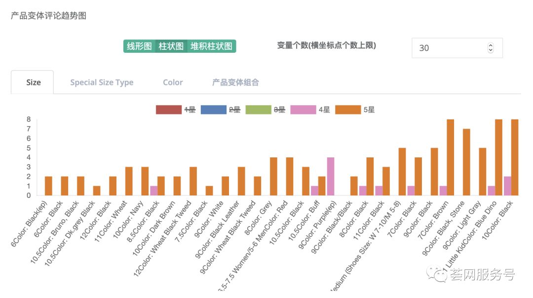 亚马逊买家更喜欢什么样类型的SKU呢,根据产品变体评论趋势图,我们得出结论。