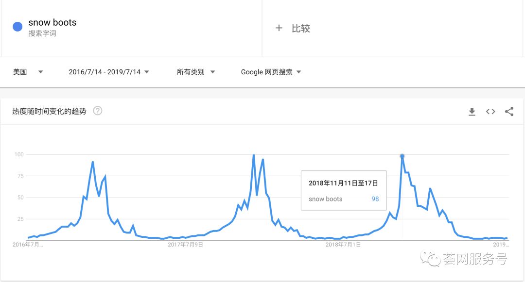 根据以上我们的产品分析,得出结论:“snow boots – 雪地靴”确实是一款不错的产品,我们打开Google Trends搜索关键词“snow boots”,发现每年的11月-1月为销售雪地靴的旺季,而且每年热度不减。