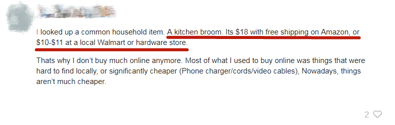 其实不只是卖家们,就连消费者现在也开始对亚马逊的税收政策表示不满了,一位消费者在论坛上说到,他在亚马逊上搜索了一件产品——厨房扫帚,18美元并且免费送货,但是这个产品在当地的沃尔玛商店或者五金店里仅需10-11美元!