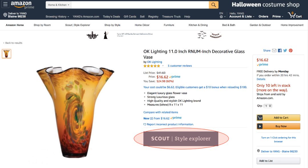 所以,在推出Scout三周的时间里,亚马逊并没有对Scout进行大量宣传,但是却把Scout搜索方法放在了非常显著的位置:产品购物车旁边: