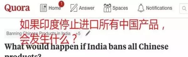 美国“问答”网站Quora上便有印度网友提问称:“如果印度停止进口所有中国产品,会发生什么?”