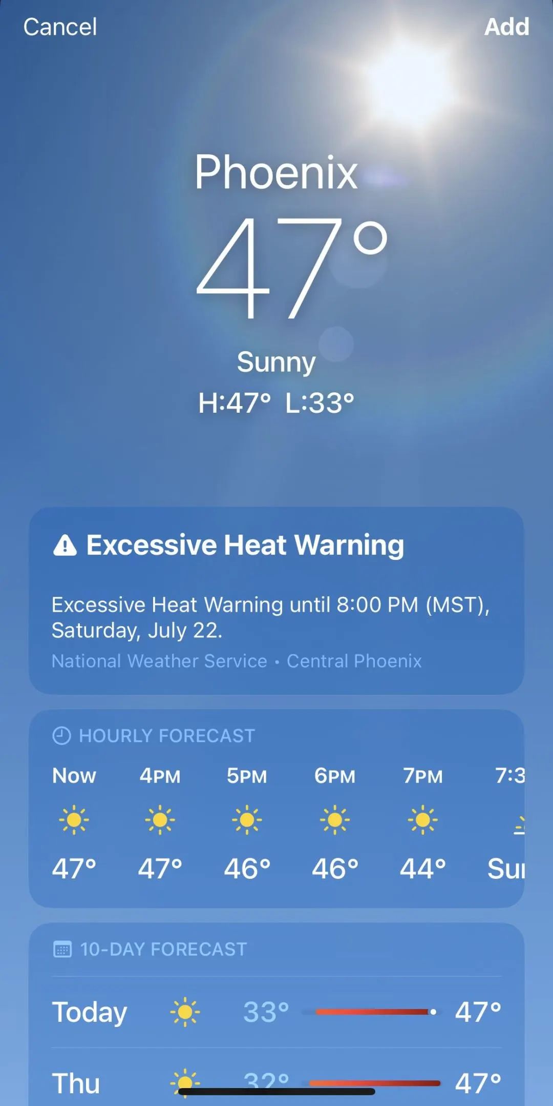 GYR3所在的凤凰城已发出高温预警,我们可以看到未来几天持续是高温天气。GYR3恢复时间未知,近期可能会面临大量删约的风险,请各位卖家知悉!