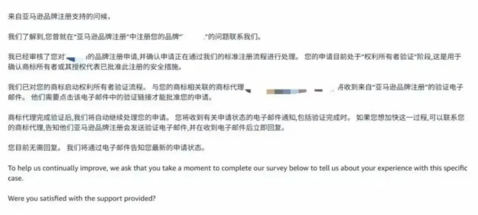 现在的新流程是:提交资料 → 亚马逊直接向商标代理律师发送验证请求 → 律师点击邮件内的确认链接 → 备案进入后续审核环节。