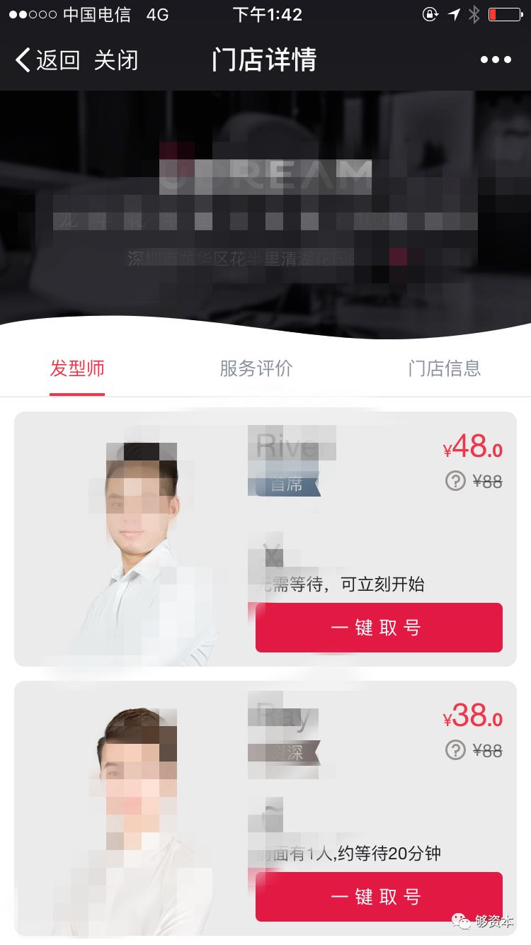 4.在我剪发的过程中,源源不断的有客人在网络上预约好,并进店等待。我结束理发以后,马上有新的客人入座。