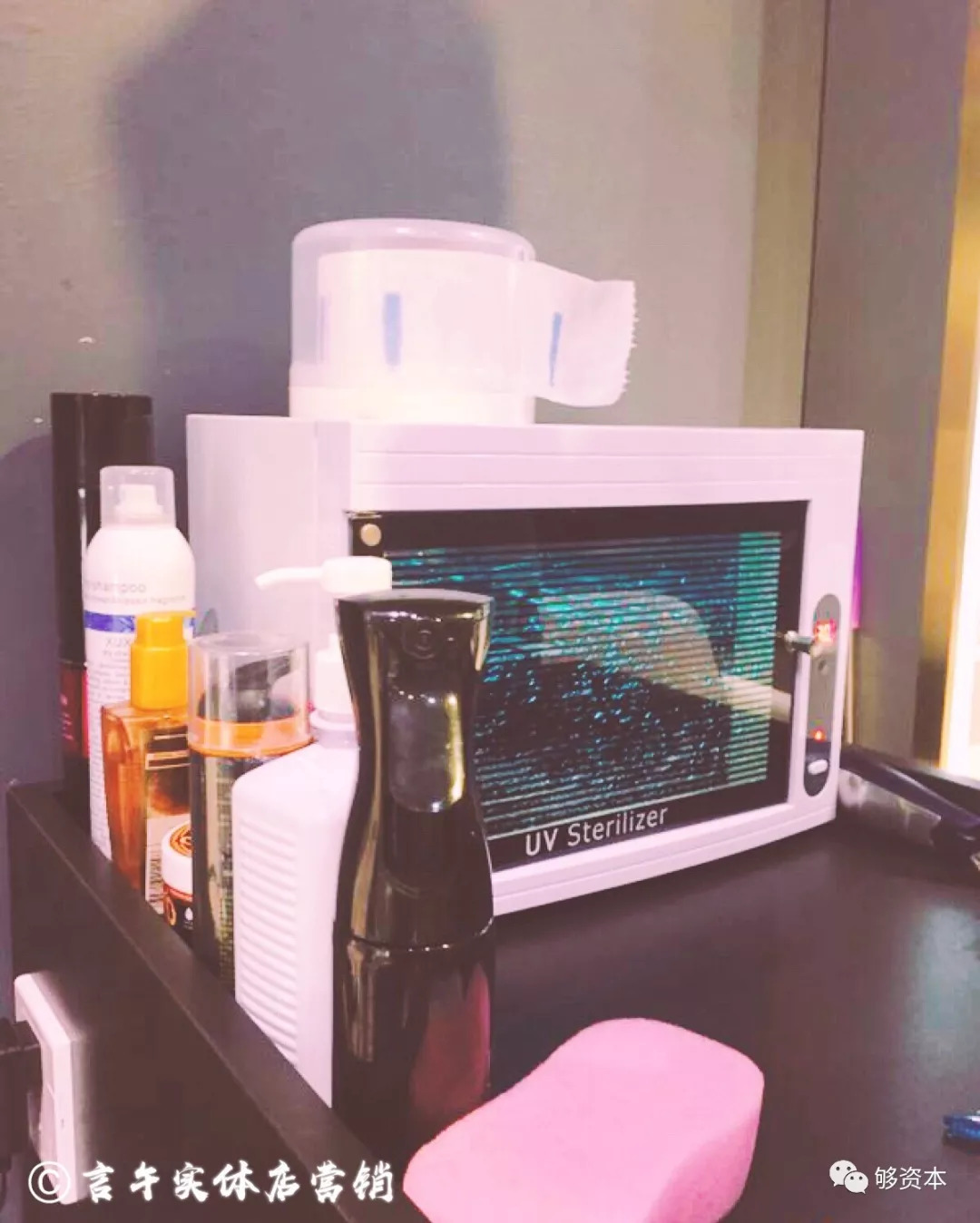 在剪发的过程中,我注意到了一个细节。他们的剪刀,都是长时间放置在消毒柜里消毒的。等拿出剪刀的时候,还能从头上感受到温热的感觉。
