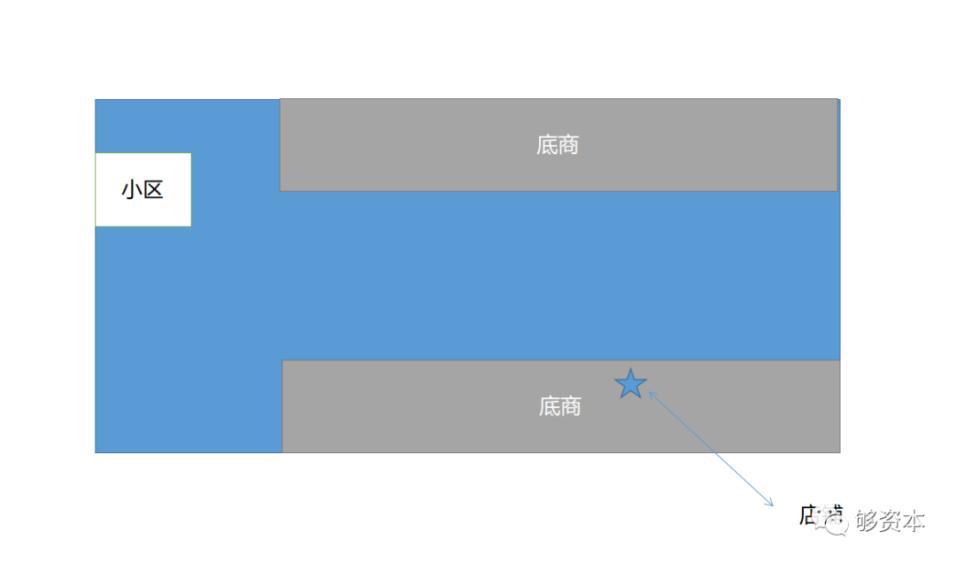 什么是“走廊式”底商?就是从马路走到小区的走廊,走廊的两排是底商业态。走廊的尽头是小区大门。