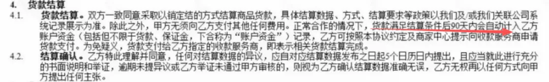 “正常合作的情况下,货款满足结算条件后90日内会自动计入乙方账户资金(包括但不限于货款、保证金)记录”