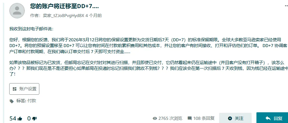 同时下个月亚马逊会全面执行DD+7新政预留资金