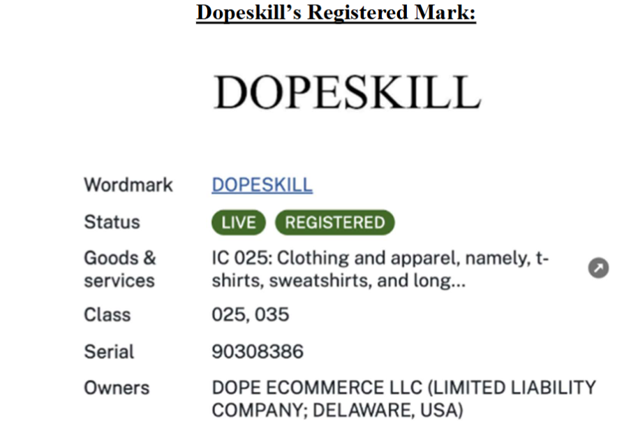 原告品牌:Dopeskill