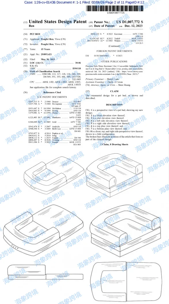 专利起诉,26-cv-1436可折叠宠物床和26-cv-1474多功能梳妆台,商标版权维权26-cv-216 高尔夫握杆辅助器