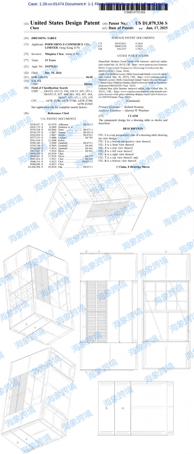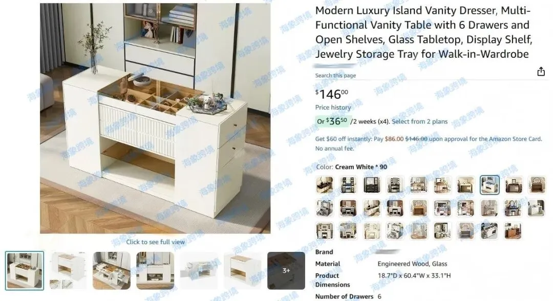 本案为国人原告,一直从事各种家具和家居装饰产品的设计和销售。案件涉及专利产品是一款多功能梳妆台,拥有多个抽屉和分格收纳空间,专利细节如下速查避雷!