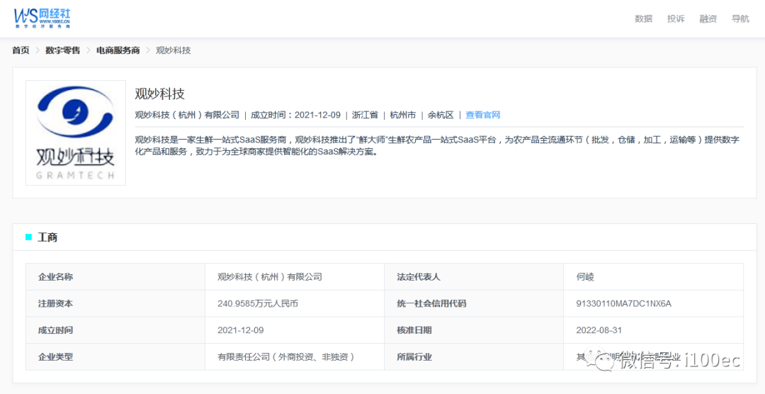 何崚在这一领域有多年从业经验,曾任盒马前CTO、天猫首席架构师,供应链平台事业部及数字农业事业部产技负责人。2021年底,他与多位前阿里电商、生鲜、供应链专家,共同成立了观妙科技。2022年,观妙科技推出了“鲜大师”生鲜农产品一站式SaaS平台,希望为农产品全流通环节(批发,仓储,加工,运输等)提供数字化产品和服务。