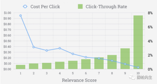因此,通过高点击率,我们会有一个高的相关性分数和低的每次点击成本。