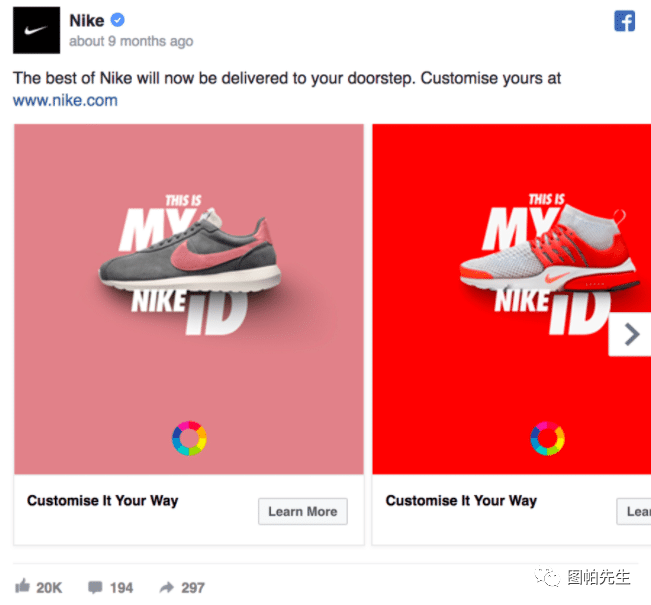 Facebook官方有建议,广告图片如果文字少于20%,表现会更好,而文字过多,展示可能会受限制。