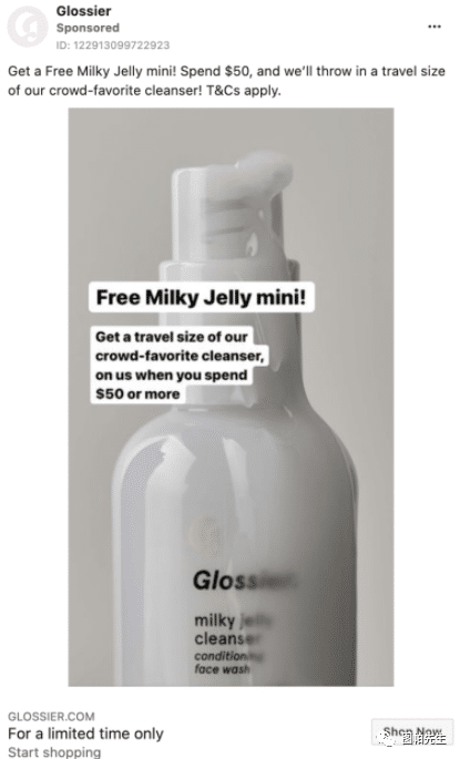 你也可以在你的广告标题中加入FOMO策略,就像Glossier在他们的广告中那样: