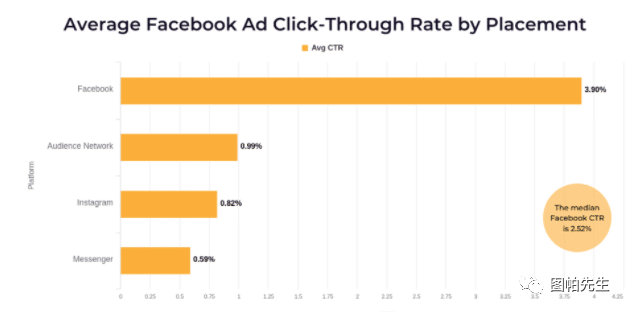结果显示,主要在Facebook上投放广告的点击率最高(3.90%),而Instagram、Audience Network和Messenger上的点击率则低于1%。