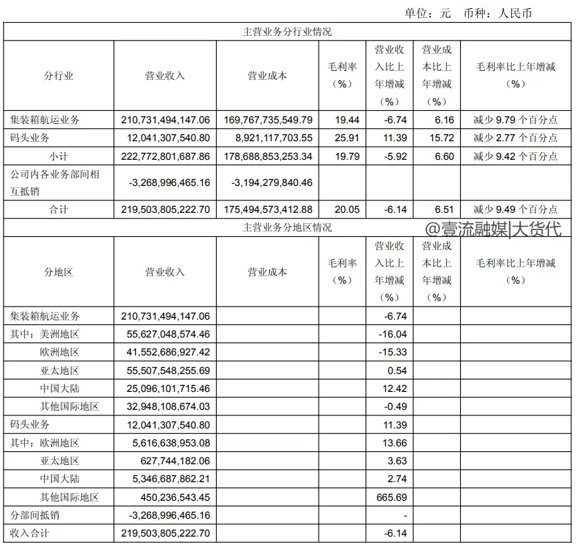 会呈现“加量不加价”的态势,主要是受运价下滑影响,导致集装箱航运业务毛利率降至19.44%,较2024年的29.23%下降了9.79个百分点。