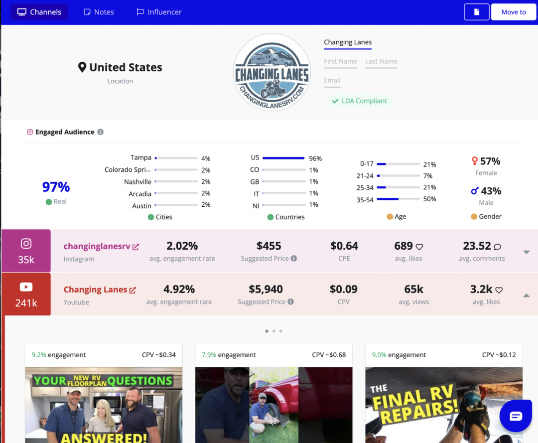 💡 注意:不能单看粉丝数/播放量/点赞量/评论数等单个数据数据表现,根据小编以往的合作红人经验,电子测评类博主有很多粉丝数和点赞数也很高,但评论数很少且多为简单夸赞词,这种大部分是红人买粉买数据了! 可以再用social blade看下账号数据之前的涨粉趋势有没有不正常表现,总之要综合各项数据去考量账号,确定没有造假数据问题再谈合作。 ▲ 点击查看高清大图