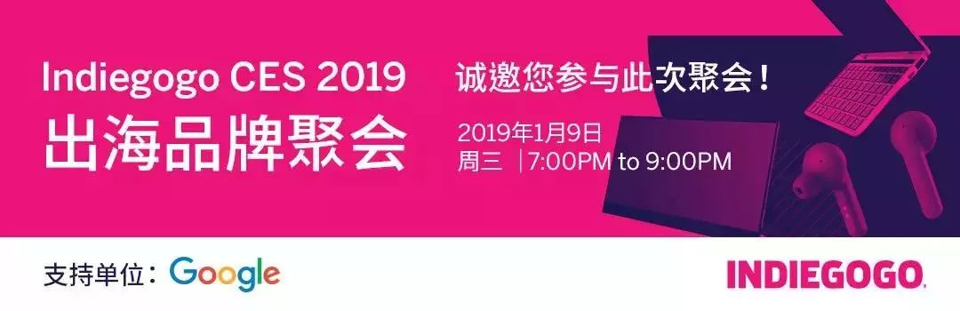 由 Google 支持的“ Indiegogo CES 2019 出海品牌聚会”即将在 2019 年拉斯维加斯美国国际消费电子展期间举办。如果想了解更多该平台上众筹细节,和更多出海团队交流,不要错过这个活动哦。