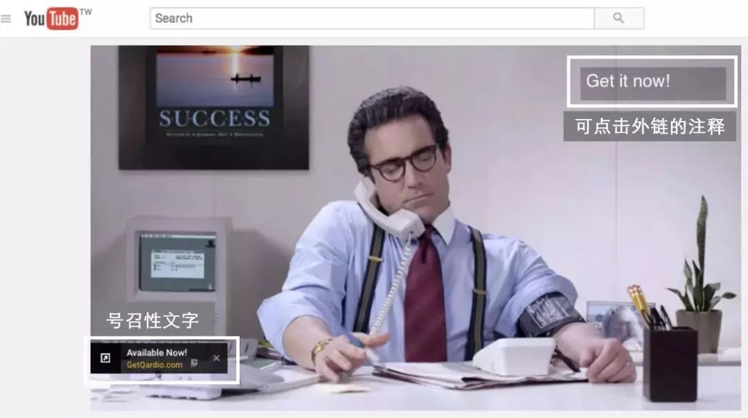 YouTube视频里还能搭配号召性文字,直接化兴趣为行动,吸引受众访问众筹网站