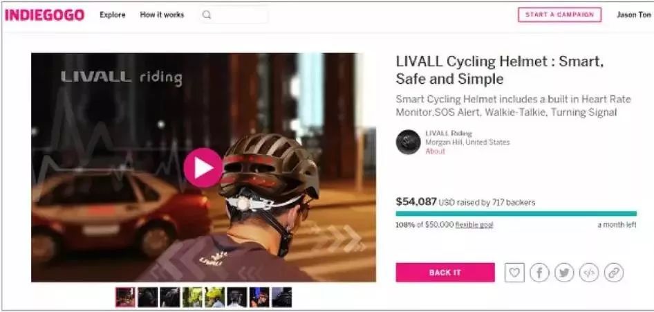LIVALL在Indiegogo上的众筹页面
