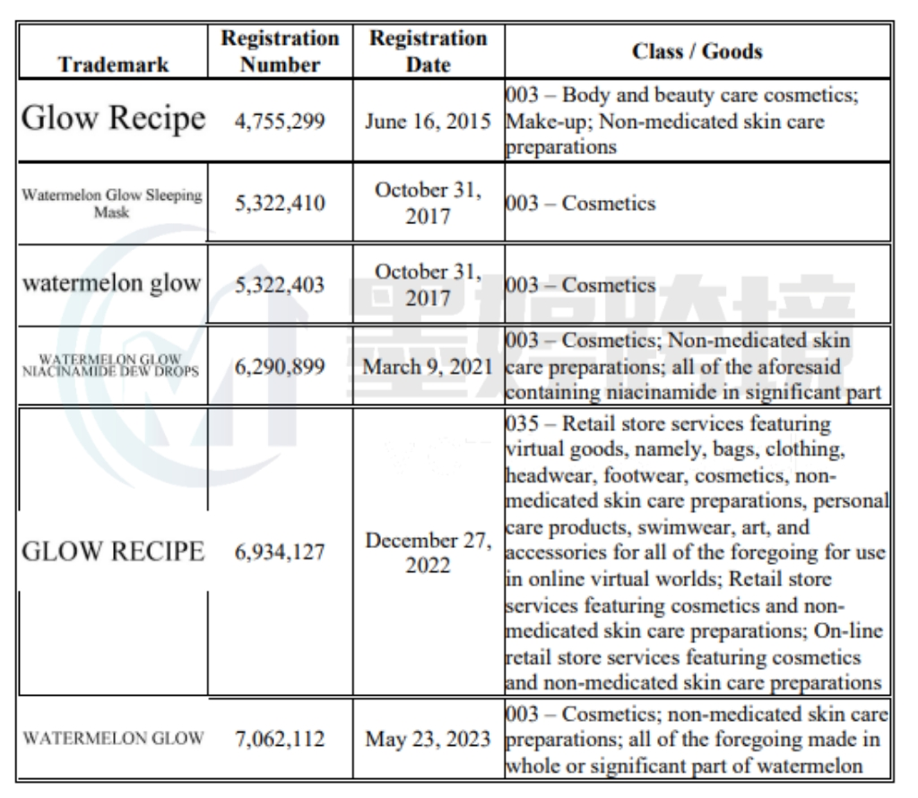 本案为商标侵权,涉及原告旗下6个商标,维权关键词:Glow Recipe、Glow Recipe、GLOW RECIPE;注意:未经授权不能随意使用,侵权风险极大!