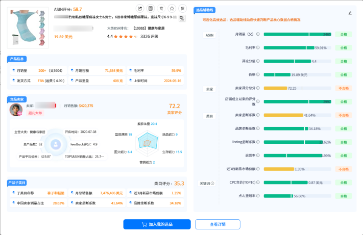 考虑到某些品类具有局限性,我们可以尝试选择稍低门槛的一些市场,如运动健身与康复辅助产品、大码鞋袜配饰等;确定了大的品类之后,我们可以利用工具事先调研相关的细分市场,找到正在增长、有新品份额的市场,这一步就是在把市场调研的工作前置,减少选品的不确定性。