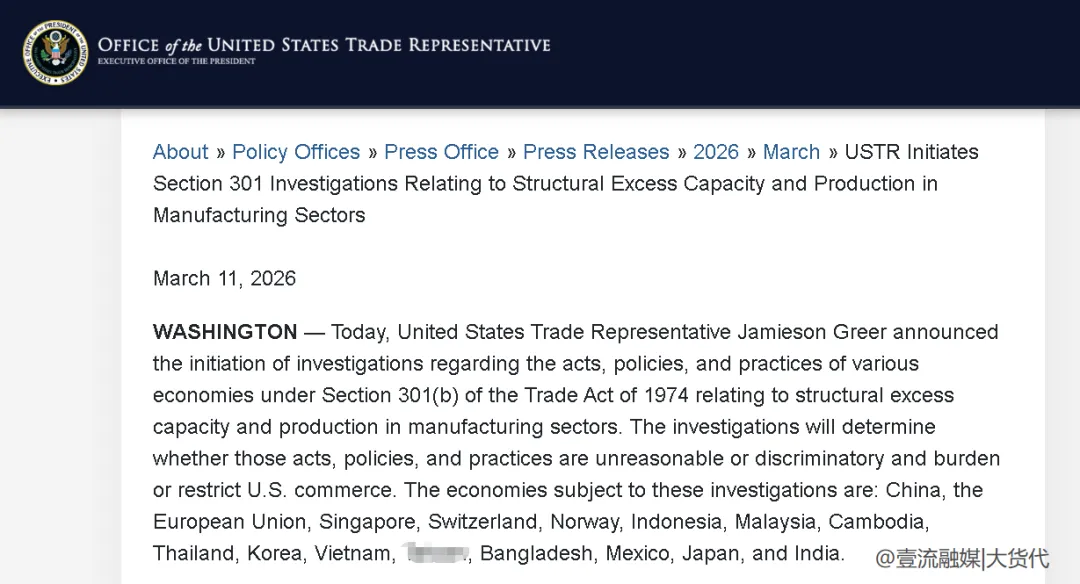 美国启动“新301调查”!或在122关税到期后征收新关税!