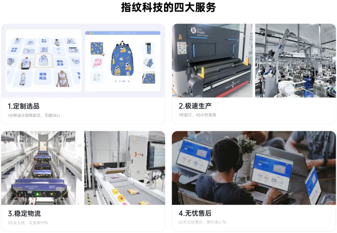 对于希望摆脱低价竞争的卖家而言,产品差异化是必然选择。POD(按需生产)模式为此提供了可行路径——卖家通过捕捉用户个性化需求,打造具备高情绪价值的产品,能够为消费者创造独特的产品体验,从而获取溢价。指纹科技HICUSTOM平台作为POD全链路解决方案提供商,就能够帮助卖家实现从选品、设计、生产、物流、售后的全链路托管,让卖家不用操心任何环节,用“零库存、低成本”轻松开始POD的高溢价生意。
