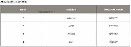 其中,根据最新的航班调整通知显示,目前船公司们考虑到春节期间及节后货量会减少,货运需求将放缓,因此决定对亚洲-美国/亚洲-欧洲的运力部署进行调整,减少部分航次!