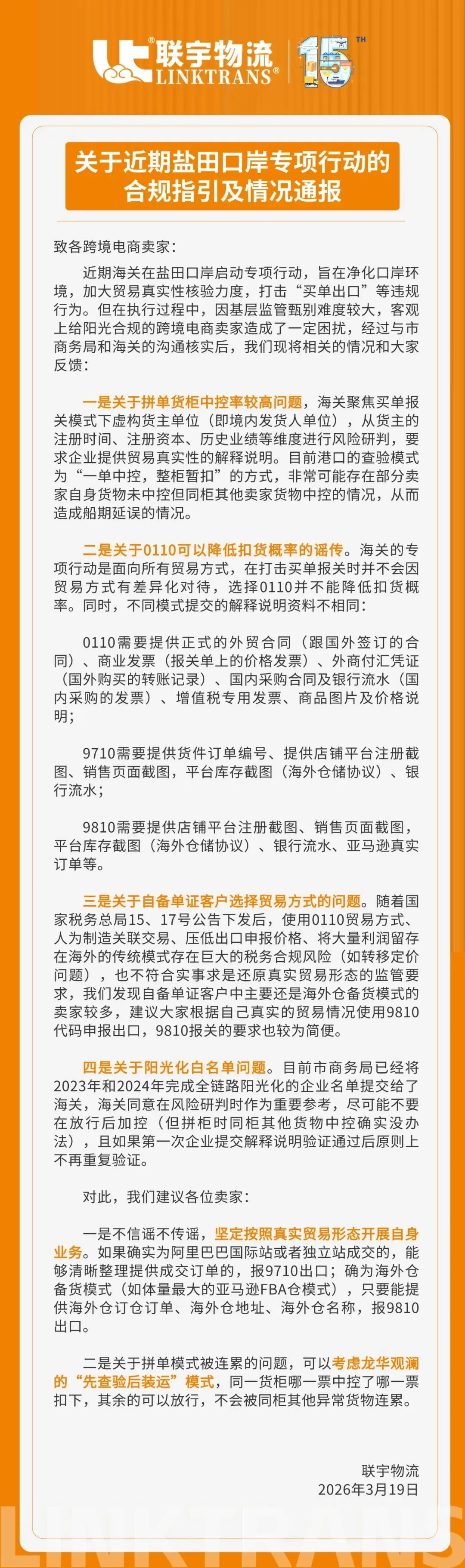 关于近期盐田口岸专项行动的合规指引及情况通报