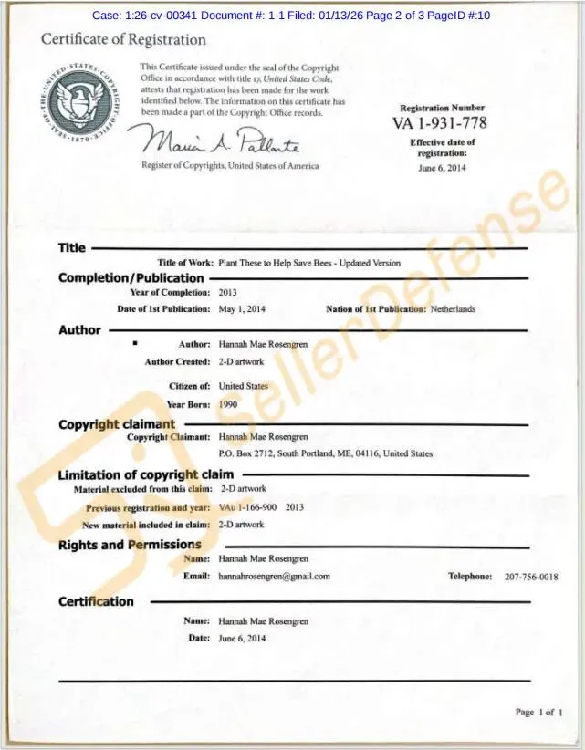原告 Hannah Mae Rosengren 是一名插画家。自 2013 年开始从事自由职业艺术家工作以来,她不断从自然界汲取灵感,并将手写字体融入到她的作品中。