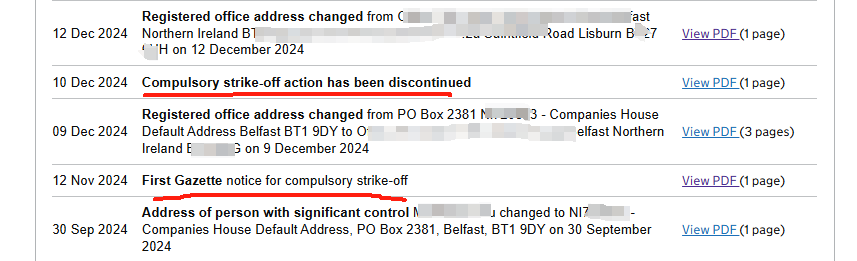 今年9月起,大量英国公司和北爱公司的注册地址出现异常,被变更为Companies House默认信箱地址(Companies House Default Address, PO Box)。如果不及时处理,该公司还会被强制吊销。示例如下: